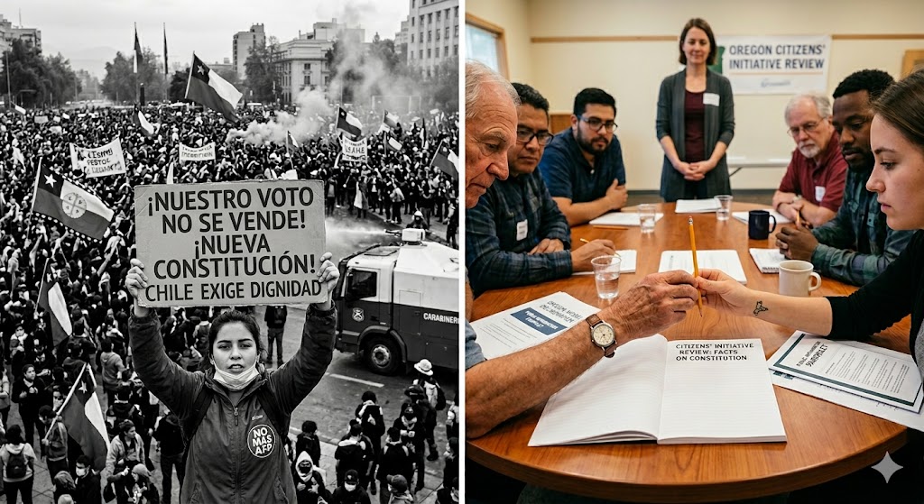 Oregonský model dokáže obrúsiť hrany. Náhodne vybraní občania sa v diskusii prirodzene blížia k rozumnému stredu, zatiaľ čo volení politici sú motivovaní k extrému, aby uspokojili svoje voličské jadro. Čile dvakrát dostalo na stôl extrém – raz zľava, raz sprava. Čiľania však v skutočnosti chceli len fungujúci štát, bezpečnosť a spravodlivé dôchodky.